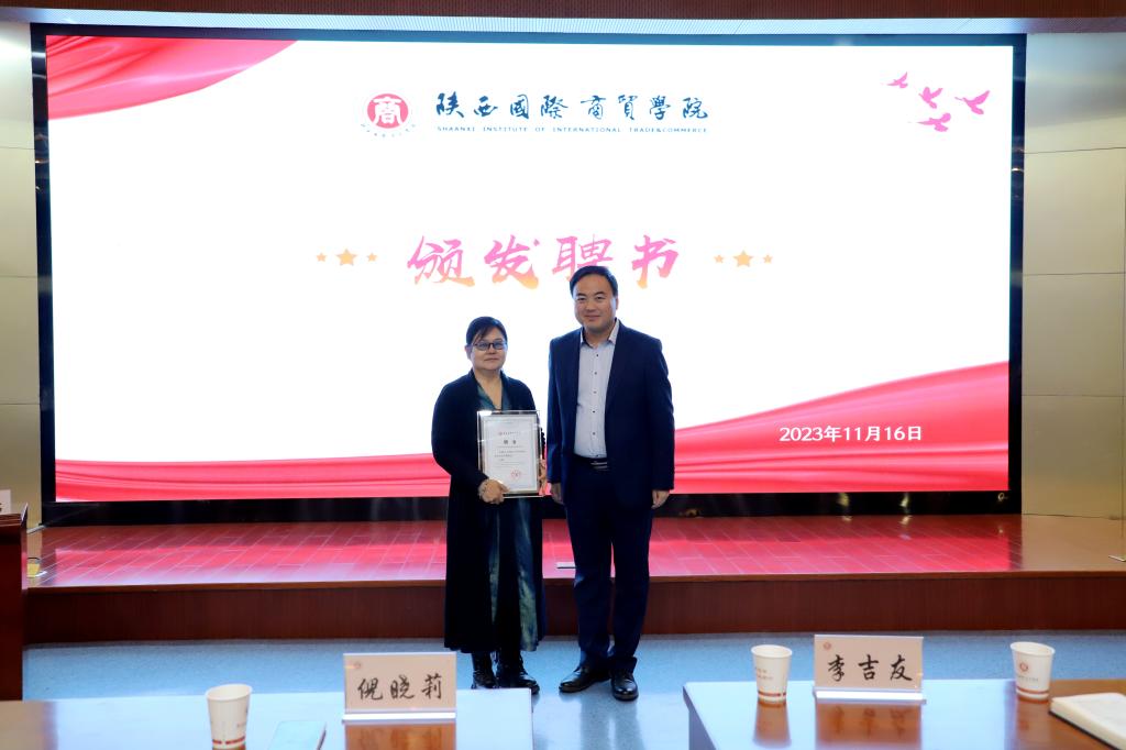 报告会前,李吉友代表学校向倪晓莉颁发了特聘教授聘书。