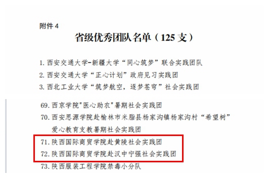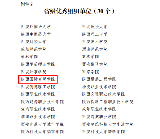 本网讯:近日,中共陕西省委宣传部、中共陕西省委文明办、中共陕西省委教育工委、共青团陕西省委、陕西省学生联合会组织的2023年陕西省大中专学生志愿者暑期文化科技卫生“三下乡”社会实践活动评选结果公布。我校荣膺全省大中专学生志愿者暑期“三下乡”社会实践活动省级优秀组织单位,并获得多项单项荣誉。