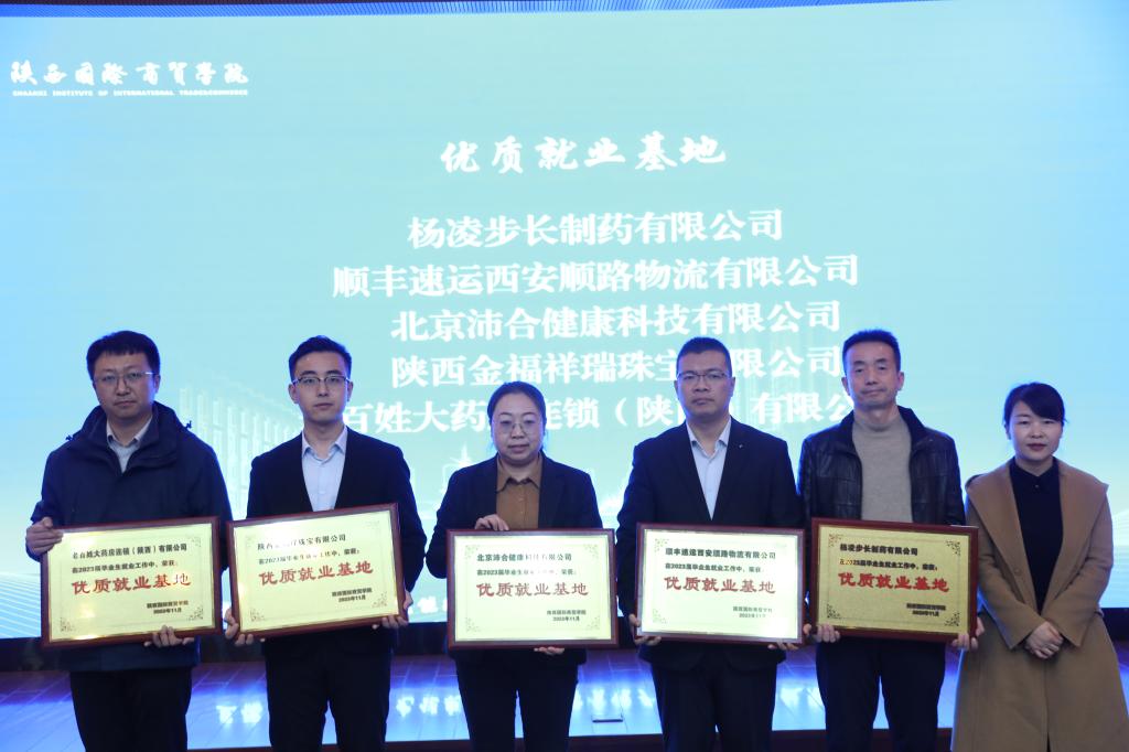 本网讯:11月23日下午,我校2023届就业工作总结暨2024届就业工作启动大会在学术报告厅二楼召开。执行校长贾明远,党委副书记、副校长李吉友,西咸新区人力资源服务中心主任杨蕊,陕西校际联聘人才科技集团总经理王剑,杨凌步长制药有限公司人事行政部经理刘虎,顺丰速运西安顺路物流有限公司人才管理经理邱天斌,北京沛合健康科技有限公司招聘经理陈珍,陕西金福祥瑞珠宝有限公司副总经理刘桥凯,老百姓大药房连锁(陕西)有限公司人力资源部总监姚勇勇,教务处等相关单位负责人,各二级学院党总支(副)书记,2023届、2024届就业联络员和辅导员,招生就业处全体及学生代表参加了本次大会。大会由招生就业处负责人主持。