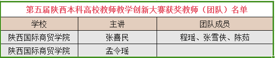 本网讯:11月28日,由陕西省教育厅、西北工业大学联合举办的陕西本科高校教师教学创新大赛落下帷幕。我校选派的教师精心准备,奋勇争先,信息工程学院张喜民(团队)、国际经济学院孟令瑶老师分别荣获团体、个人三等奖佳绩。