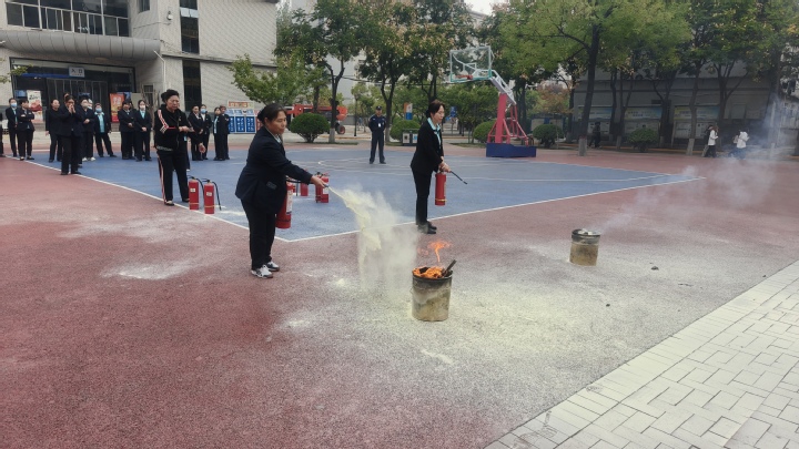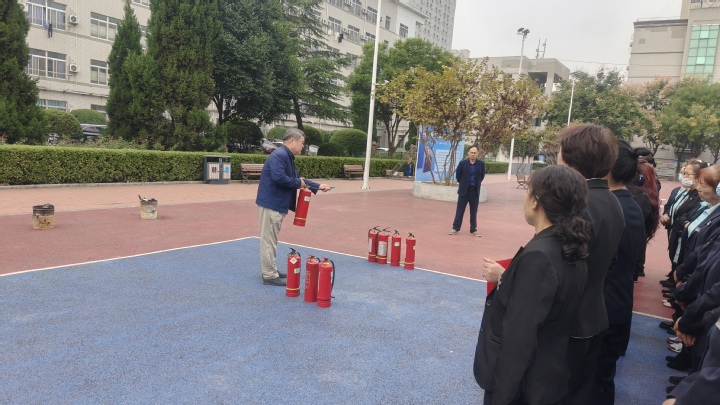 保卫处消防科袁科长从校园火灾特点、公寓火灾案例、发生火情时如何处置和报告火警、消防设施使用方法、火灾如何逃生五个方面展开。详细讲解了消防安全知识点,对学生宿舍中可能发生的安全隐患、原因做了深入的剖析,以及如何在火灾中进行有效的自我保护和疏散逃生,之后全体公寓管理人员现场进行灭火器使用的实操训练。