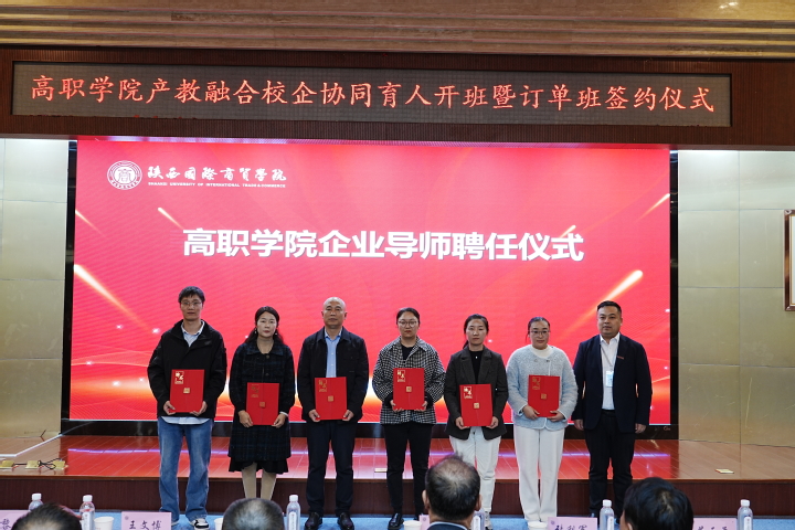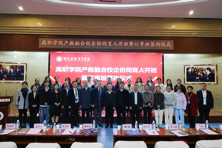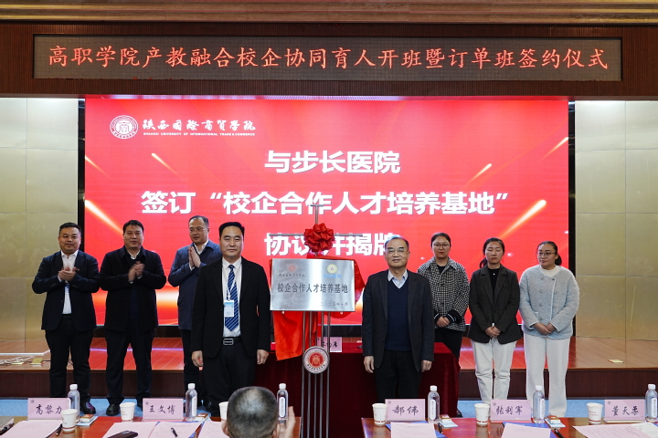 本网讯:10月22日下午,陕西国际商贸学院高职学院产教融合校企协同育人开班暨订单班签约仪式在学术报告厅二楼举行。陕西步长制药有限公司总经理张卫民及其团队成员,步长医院院长郝伟及其团队成员,校长助理王文博、张利军,教务处、人力资源处、产教融合中心、教师发展中心、招生就业处等职能部门的负责人,高职学院领导班子和师生代表出席仪式。仪式由高职学院相关负责人主持。