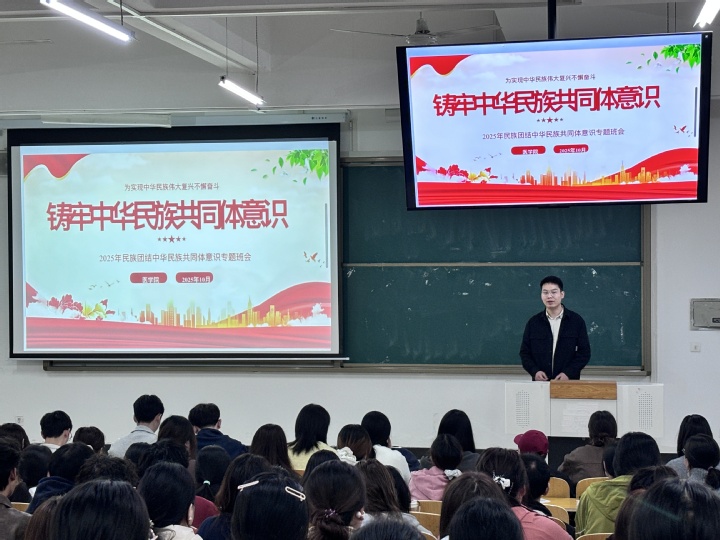 学院以线上线下联动模式搭建学习平台,筑牢学生思想根基。依托官方微信平台打造“民族团结故事”特色专栏,聚焦不同历史时期各民族互帮互助、携手奋斗的鲜活案例,以文字叙述、图片展示等形式,生动讲述各民族在共同发展历程中结下的深厚情谊,以及为国家建设、社会进步携手奋斗的动人故事。学生通过阅读故事、分享感悟,增强民族认同感与归属感得到有效强化,不同民族学生间的理解、尊重与包容进一步增进。组织召开“青春共话团结梦”各民族学生代表座谈会,各族学生代表围绕日常学习、校园生活、文化认知等话题畅所欲言,分享学业互助中的暖心经历、生活相处里的包容感悟,深入交流民族文化传承与民族团结的意义。面向全院学生开展“铸牢中华民族共同体意识”主题班会,以《中华民族共同体概论》为核心,通过教师领学、课件演示、视频展播等形式,梳理中华民族多元一体格局的形成脉络与深刻内涵。学生围绕“当代青年践行共同体理念”展开讨论,汉族学生分享传统节日文化传承心得,少数民族学生介绍本民族特色习俗与精神特质,在思想碰撞中明晰民族交融的历史与现实逻辑。