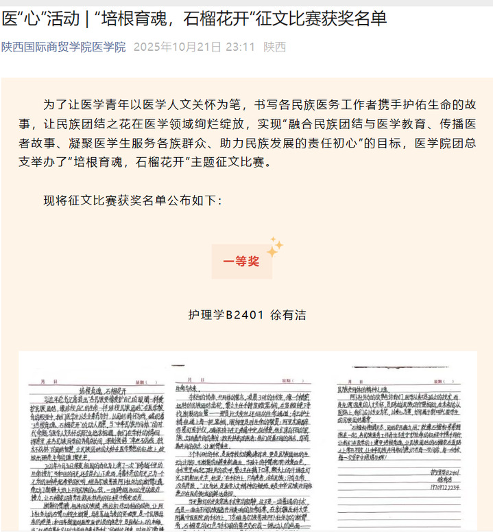 医学院“培根育魂 石榴花开”系列活动的成功开展,不仅为校园文化注入鲜活活力、丰富各族学子课余生活,更以潜移默化的方式推动“中华民族一家亲”理念深度融入师生思想认知,为铸牢中华民族共同体意识、促进校园民族团结写下生动注脚。