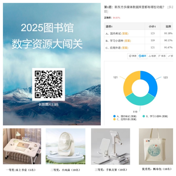 在“初识”阶段,图书馆创新推出“实地参观+资源讲座”融合式入馆教育模式,实现2025级新生全覆盖。活动中,馆员带领新生熟悉图书馆馆藏布局,结合实际操作讲解电子资源检索、专业数据库使用方法,帮助新生快速掌握获取专业知识的技能;同步开展的数字资源挑战活动,吸引大量新生积极参与,有效提升新生新科技应用能力。此外,图书馆编制的新生读者手册,通过线下领取与线上查阅相结合的方式发布,整合了借阅规则、空间服务、智能平台操作等关键信息,其中线上查阅渠道因便捷高效更受新生青睐,进一步契合了学校“新科技能”的培养需求。