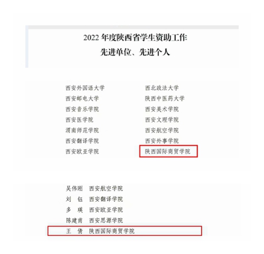 本网讯:近日,中共陕西省委教育工作委员会发布《中共陕西省委教育工委 陕西省教育厅关于2022年度全省教育系统综合表彰的通报》,我校被评为陕西省学生资助工作先进单位,王倩同志被评为陕西省学生资助工作先进个人。 近年来,我校深入贯彻落实习近平新时代中国特色社会主义思想,全面贯彻党的教育方针,落实立德树人根本任务,营造全方位、全过程和全员育人的氛围,推动学校资助工作转型,学校创新思路构建“365”资助育人...