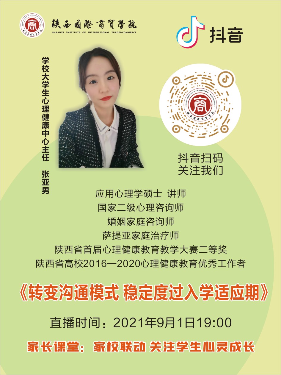 本网讯 新学期开学季,为加强家校联动,帮助家长更新教育观念,引导家长关注关爱学生心理健康,营造良好的家校协同育人的良好氛围,学生工作处会同马克思主义学院联合举办以“家校联动关注学生心成长”为主题的公益讲堂,学校大学生心理健康中心张亚男、仇建宁老师,分别于9月1日、9月3日在“抖音”直播开讲。 两位老师分别以《转变沟通模式稳定度过入学适应期》、《用脑用心营造和谐亲子关系》为题,围绕学生成长中的自我认知、...