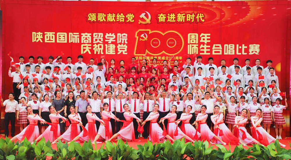 本网讯:为庆祝中国共产党成立100周年,深入开展党史学习教育,6月25日下午,陕西国际商贸学院庆祝建党100周年师生合唱比赛隆重举行。校长张辉,党委书记、督导专员康亚国,常务副校长贾明远,副校长甘世平,副校长李吉友和1400余名师生同台演出,深情表达爱党爱国爱校之情。我校隆重举行庆祝建党100周年师生合唱比赛校长张辉致辞党委书记、督导专员康亚国宣布比赛开始一首红歌,记录着一段峥嵘岁月;一首红歌,象征着一面光辉旗帜...