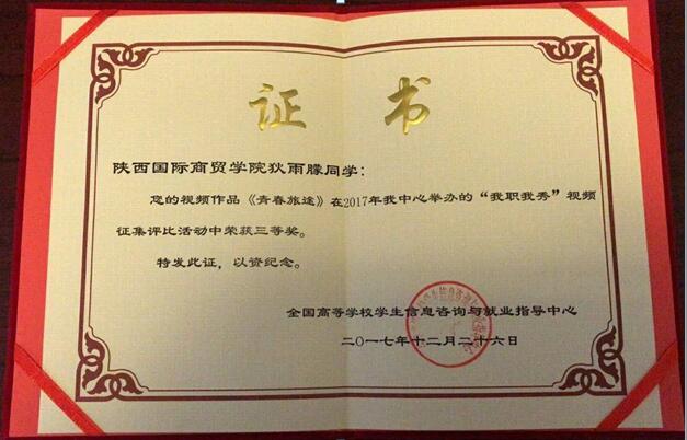 本网讯 由全国高等学校学生信息咨询与就业指导中心主办的“我职我秀”主题视频征集评比活动结果近日揭晓,我校毕业生作品荣获三等奖2项。 本次活动共吸引全国多所高校选送的200多个作品参加评比,985、211、本专科院校同台竞技。招生与就业处在各二级学院的配合下,积极组织备赛工作,指导学子用镜头记录自己对行业、职业和具体岗位的理解和感受。经过大家的共同努力,最终,我校狄雨朦、樊碧婷两名同学的视频作品取得了全国三等奖...