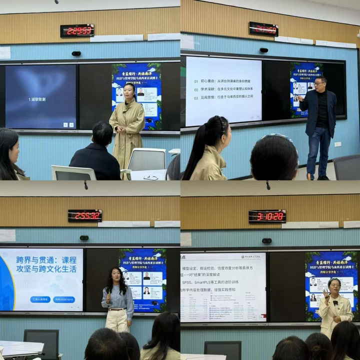 本网讯:10月10日下午,经济与管理学院在7-209教室成功举办“青蓝偕行,共话南洋”——赴马来西亚读博教师返校分享沙龙活动。学校国际交流处处长赵景明、经济与管理学院院长刘勤燕出席活动并致辞,全院无课教师参加活动。活动邀请近期在马来西亚高校攻读博士学位的路曦、陈伟、赵育瑶、贺倩四位教师,围绕他们在海外求学期间的课程学习、科研训练、文化体验与教学反思进行了深入分享。路曦以《马来西亚管理学博士求学记》为主线,对...