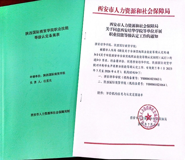 我校获批西安市人力资源和社会保障局职业技能等级认定资格