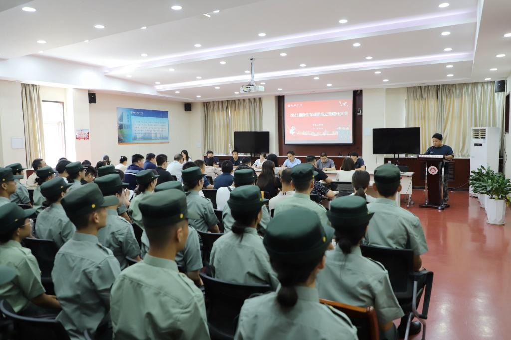 本网讯:8月22日下午,学校在行政楼第三会议室召开2023级新生军训军训团成立暨聘任大会。学校党委副书记、副校长、军训工作领导小组组长李吉友出席会议并讲话。学校新生军训工作领导小组成员、各学院党总支书记(副书记)、军训团教、指导员,2023级军训教官参加会议。 会议现场 党委副书记、副校长、军训工作领导小组组长李吉友讲话会上,为2023级学生军训团干部颁发了聘书,学生工作部负责人宣布了《陕西国际商贸学院2023级新生...