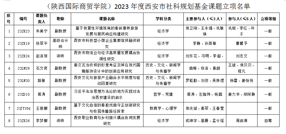 我校获批8项2023年度西安市社会科学规划基金课题