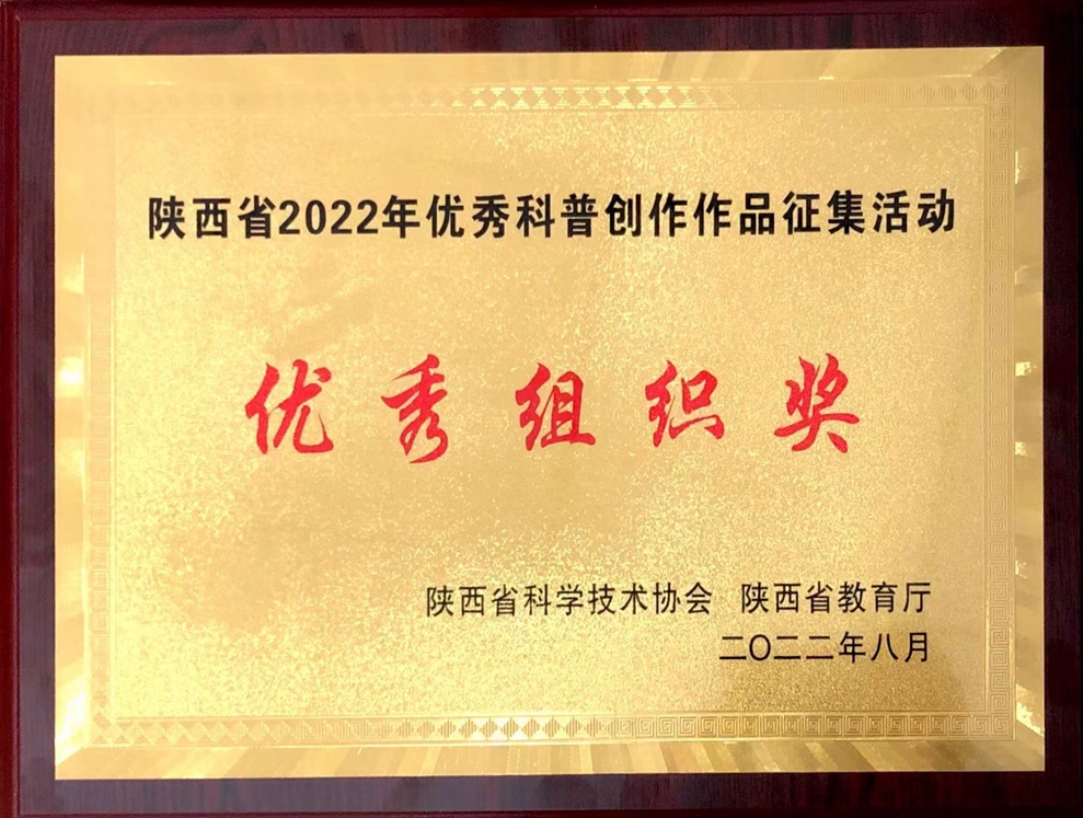 本网讯 近日,由陕西省科协、陕西省教育厅主办,陕西省科普作家协会、陕西省科普宣教中心承办,联合开展的陕西省2022 年优秀科普创作作品征集活动结果公布,我校科协组织参与的科普创作作品获得优秀组织单位及个人二等奖1项、三等奖2项、优秀奖1项,在此次活动中取得佳绩。   该活动主题设立为“喜迎二十大奋进科技路”,旨在迎接党的二十大的胜利召开,深入贯彻落实习近平总书记关于科普和科技创新的重要论述,加快推进...