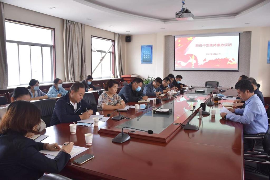 本网讯:9月27日上午,学校在行政楼第二会议室召开新任干部集体廉政谈话会。常务副校长、党委副书记、纪委书记贾明远,新任处级干部、科级干部参加了会议,纪委副书记、监察审计室主任王文博主持会议。 会议现场会上,纪检监察专员带领全体新任干部领学了《中国共产党廉洁自律准则》和《中国共产党纪律处分条例》等相关文件。党委副书记、纪委书记贾明远强调干部开展任前廉政谈话是干部任免的必经程序,目的是提高干部对党风廉政建...