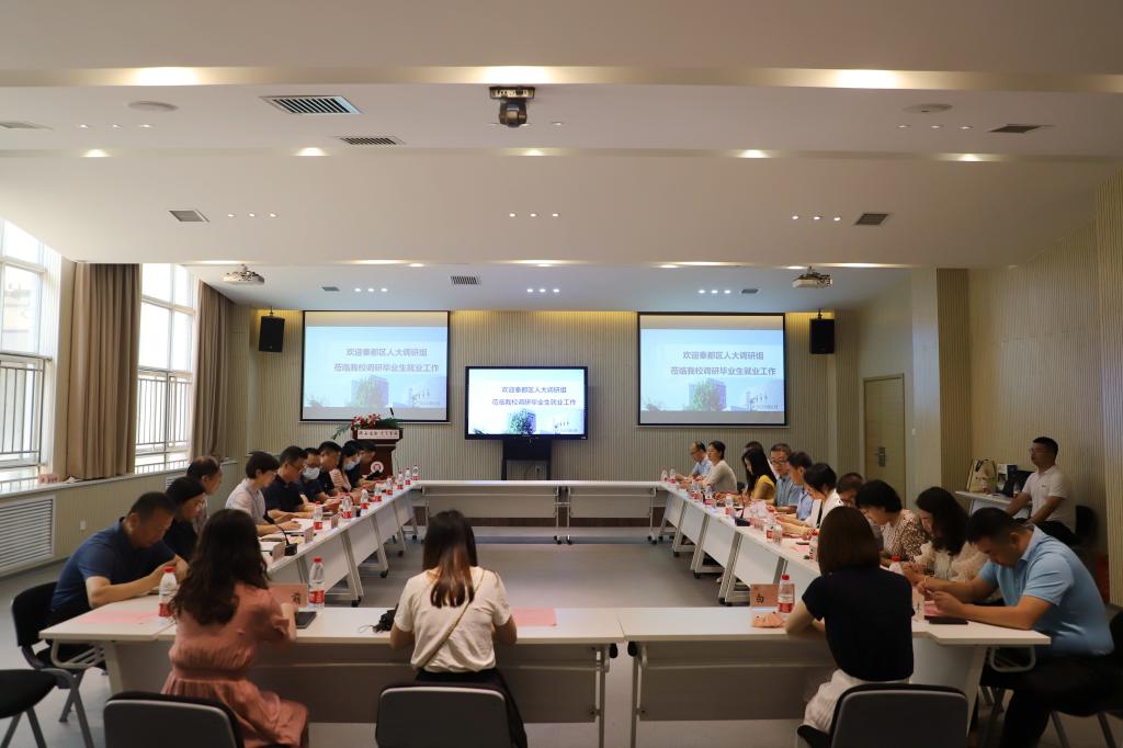 本网讯:6月22日上午,咸阳市秦都区人大常委会副主任高生奇率队到我校调研高校毕业生就业工作。区人力资源和社会保障局局长何伟、区人大常委会委员、代工委主任刘澍雨等一行人陪同调研。我校党委副书记、副校长李吉友,副校长万青,招生就业处负责人,以及各二级学院党总支(副)书记参加了本次会议,会议由区人大常委会副主任高生奇主持。 座谈会现场 咸阳市秦都区人大常委会副主任高生奇主持会议 陕西国际商贸学院党委副书记、副...