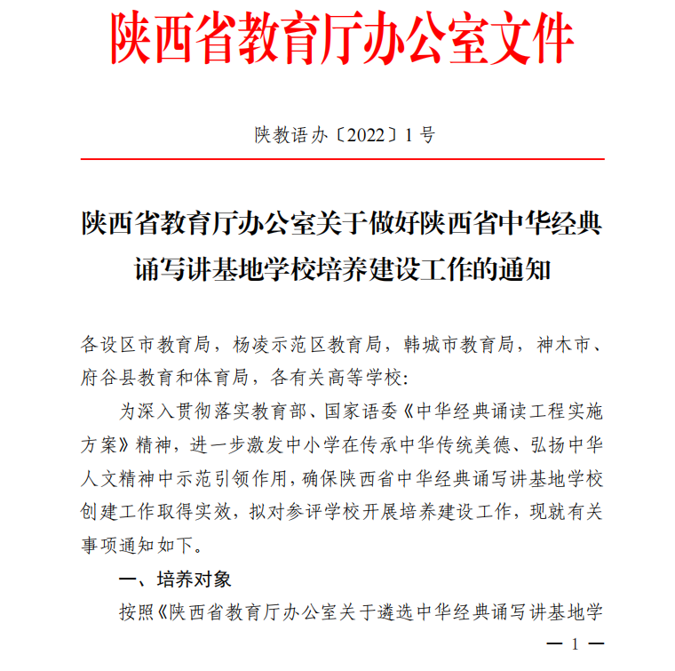 本网讯:近日,陕西省教育厅办公室发布了《关于做好陕西省中华经典诵写讲基地学校培养建设工作的通知》,我校获批陕西省中华经典诵写讲基地学校。 为进一步激发中小学在传承中华传统美德、弘扬中华人文精神中示范引领作用,弘扬中华优秀语言文化,营造全社会诵读经典的文化氛围,由学院教务处牵头,文学与教育学院组织申报了陕西省中华经典诵写讲基地。该基地成功申报有助于依托基地开展丰富多彩的诵读、书写、讲解、演讲、吟诵、...