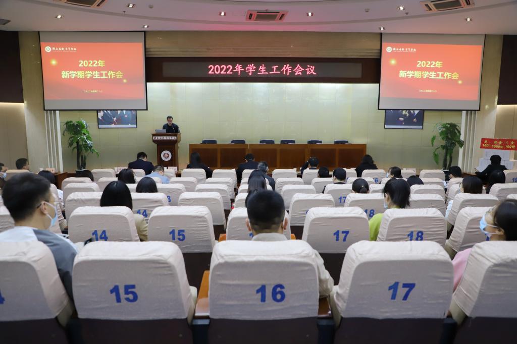 本网讯:4月20日上午,我校在学术报告厅二楼召开2022年学生工作会议。学校党委副书记、副校长李吉友出席并讲话,学工系统全 体成员参加会议。会议由学生工作处副处长郑敏杰主持。 会议现场 副校长李吉友讲话会上,学生工作处处长张利军对2022年学生工作要点进行详细解读。他谈到,2022年学生工作以习近平新时代中国特色社会主义思想为指导,紧密围绕学校目标任务,坚持思想引领,抓好学生思想教育“定盘星”;坚持内涵发展,发挥学...