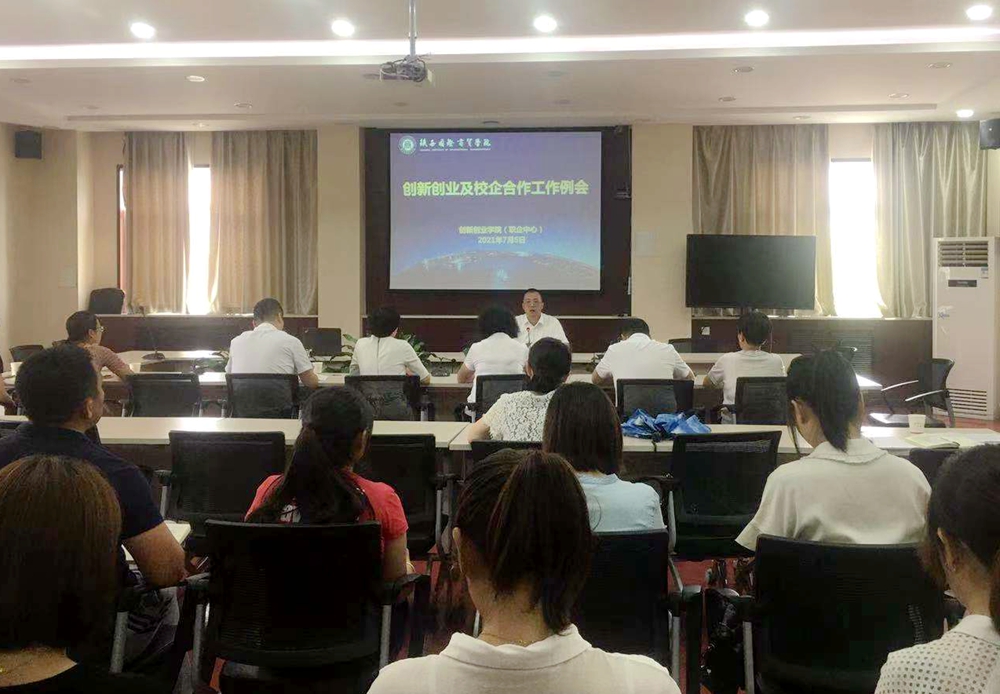 本网讯 7月5日上午,创新创业学院组织召开双创及校企合作工作例会,教务处等相关职能处室负责人,各二级学院负责双创及校企合作工作的院领导和专员,创新创业学院全体人员参加了本次会议,会议由创新创业学院院长王文博主持。 会上,王文博院长主要从“互联网+”赛事、大创项目落地、双创类课程师资及校企合作工作四方面做了重点部署。他强调:一是各二级学院需高度重视“互联网+”大赛,参赛项目团队要积极参加暑期训练营,提升参...